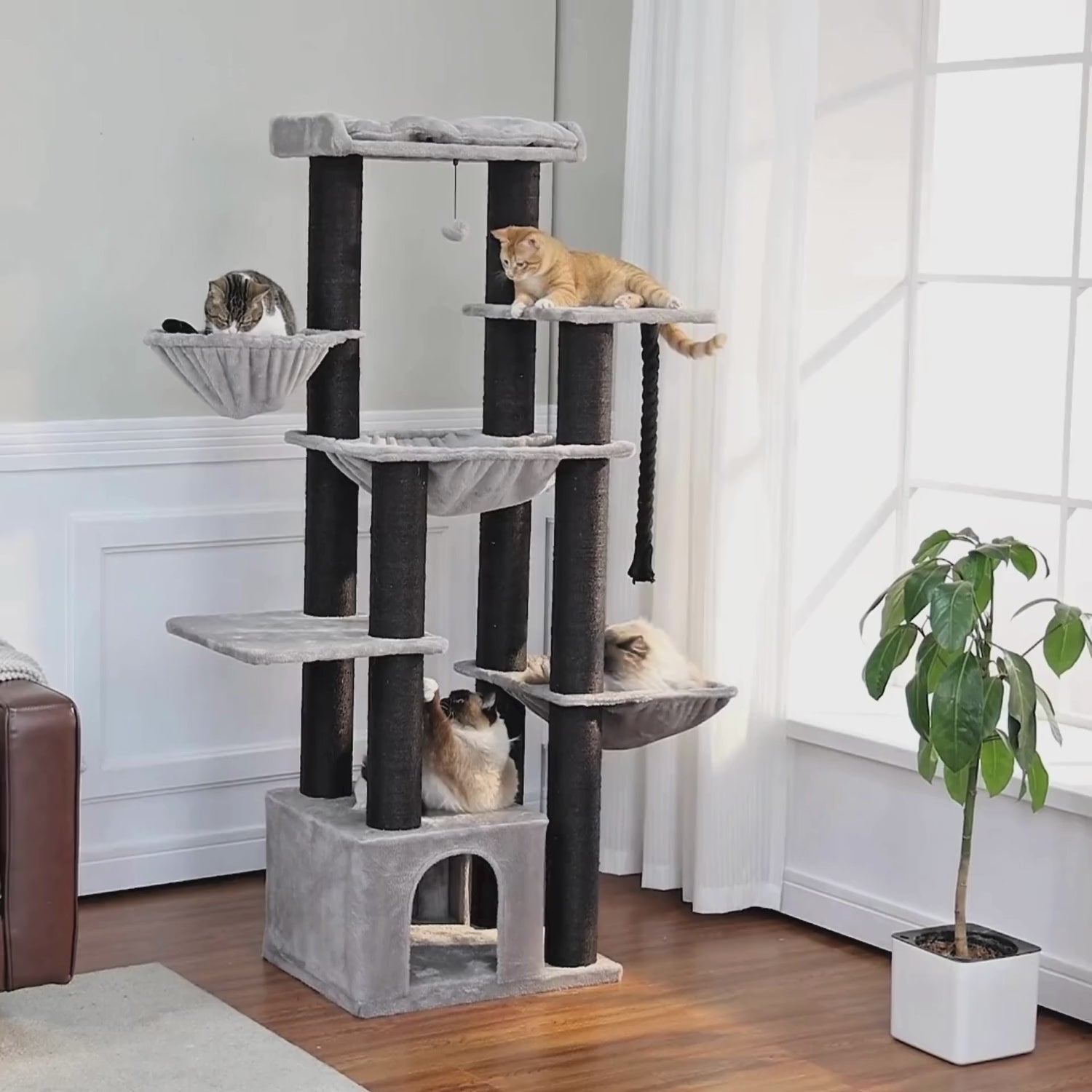 Der LUMA bietet deiner Katze viel Platz zum Klettern, Strecken, Dösen, Krallenwetzen , breite Plattformen und ein gemütliches Nest sorgen für Wohlfühlmomente auf allen Ebenen.